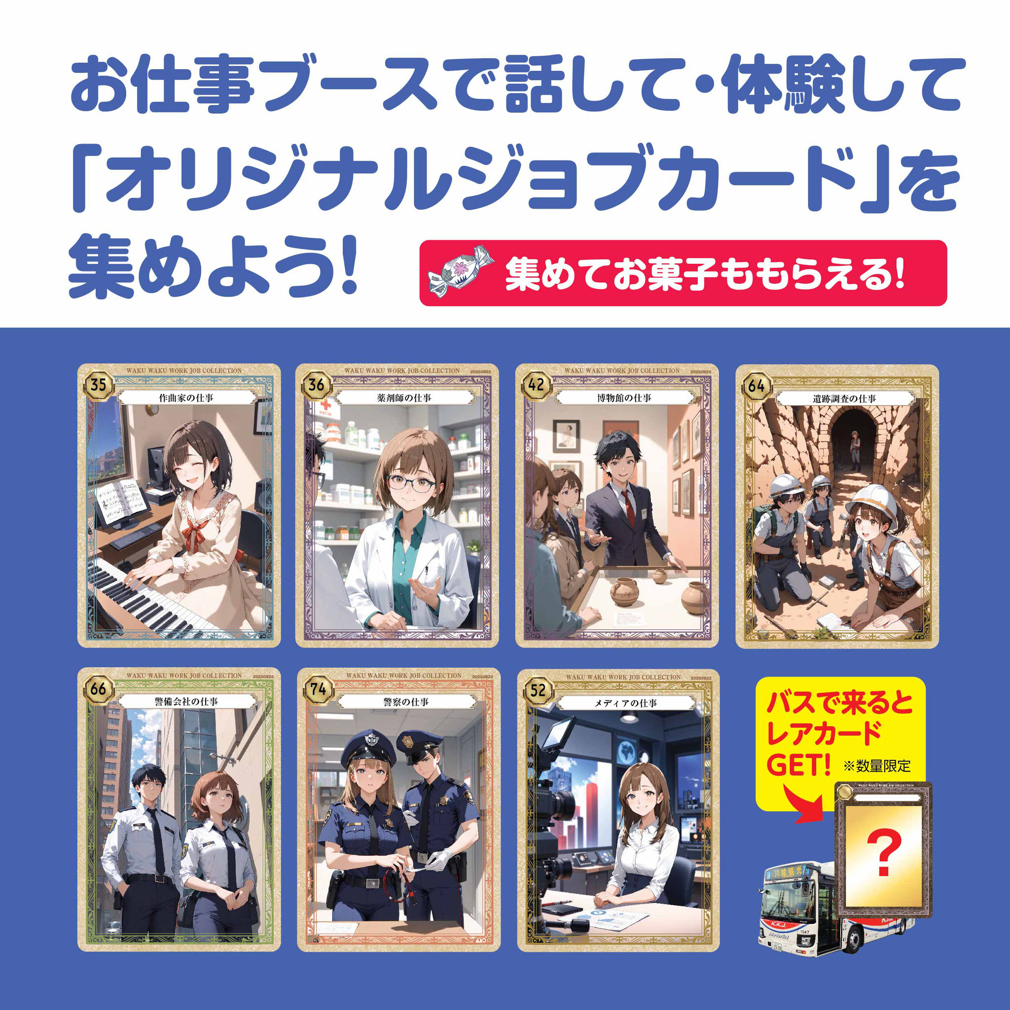 普段なかなか出会えない職業から地域に必要な職業まで。各ブースで「仕事」の紹介や実演・体験を行います。気になるお仕事の所で、直接質問してみよう!